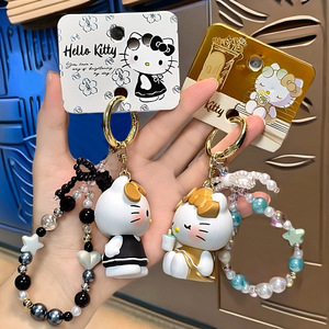 正版凯蒂猫悠闲假期钥匙扣书包汽车挂件HelloKitty金色黑色礼物女