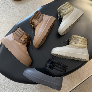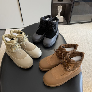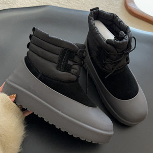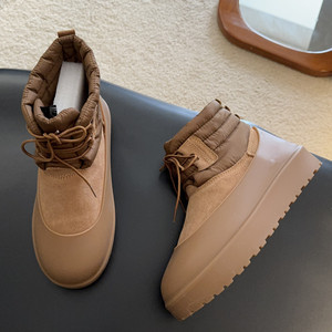 跨境胶套羽绒靴雪地靴男女皮毛一体系带靴子防滑保暖靴河南桑坡村