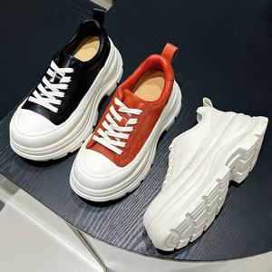 马皮厚底6cm麦昆小白鞋2025年秋季新款轻增高松糕百搭运动休闲鞋