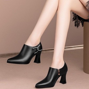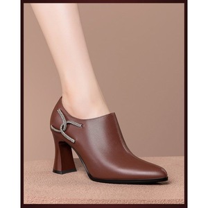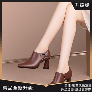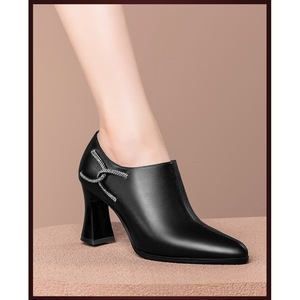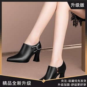 粗跟单鞋女2025春秋新款马丁靴水钻防水台高跟鞋女时尚女士皮靴子