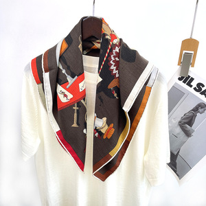 秋冬63中方巾四方叶曲丝毛羊毛桑蚕丝双面同色格子复古女旅游百搭