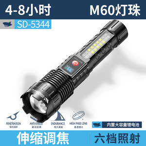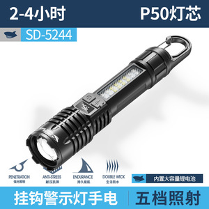 SD-5244变焦带侧灯数显手电-破窗款【内置18650电池1200毫安】