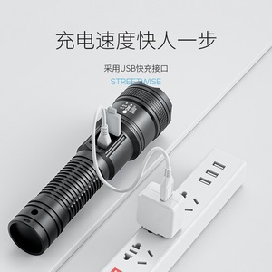 白激光变焦远射手电筒带电显示手电筒便携手电筒四档调节