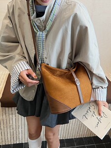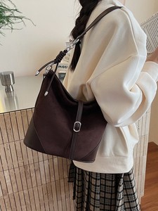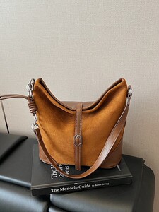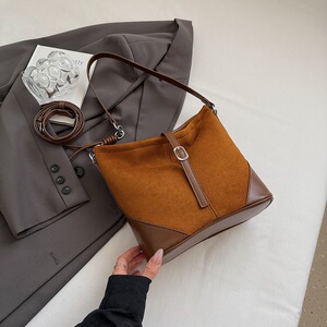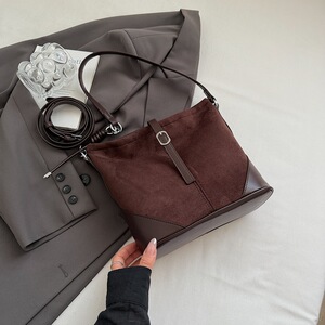 秋冬季复古包包女2025新款通勤百搭斜挎包单肩包小众麂皮绒水桶包