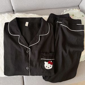 扎染条纹云朵纯棉纱睡衣女春秋季长袖简约可外穿开衫家居服夏套装