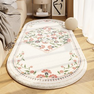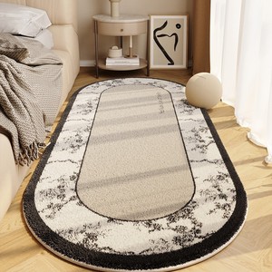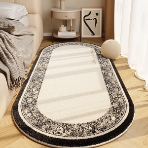 法式仿羊绒点塑底床边毯床边长条加厚地毯主卧高级感椭圆形地毯