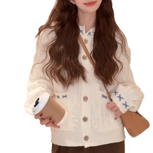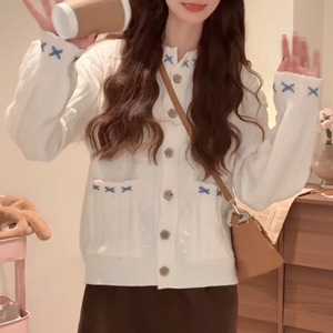 慵懒风圆领长袖针织衫女2025秋季新款设计感宽松软糯毛衣外套上衣