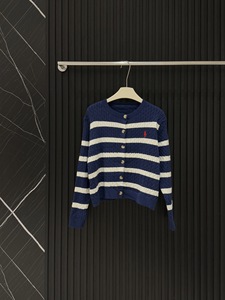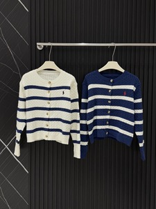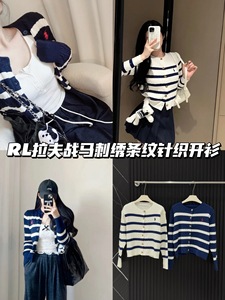 2025秋季新款小马刺绣毛衣开衫女撞色条纹时尚减龄南油针织长袖