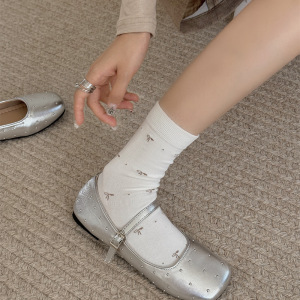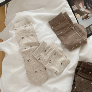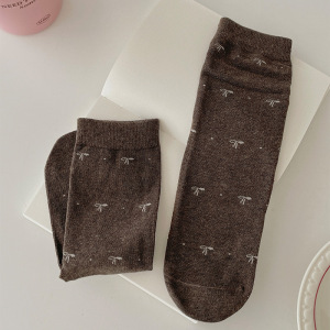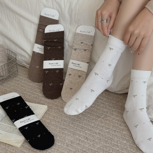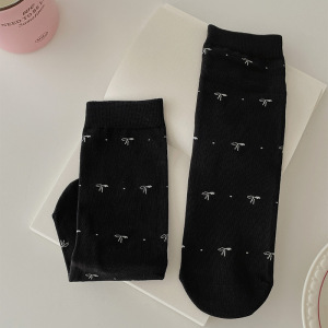 秋季新品满天星蝴蝶结简约学院风复古小花韩系堆堆袜中筒袜女棉袜