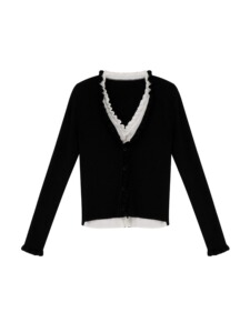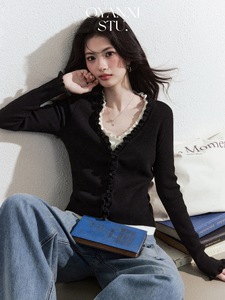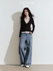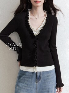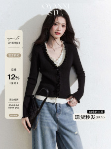 欧阳喜《昼夜之思》春季假两件V领上衣通勤百搭显瘦毛针织衫套装