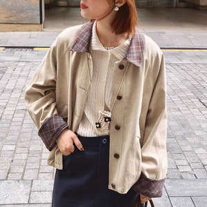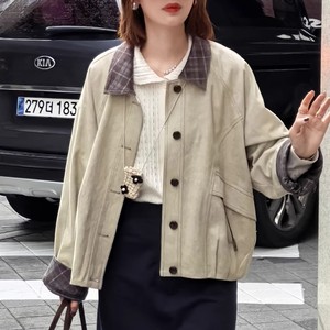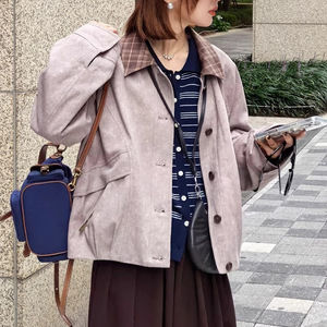 「白描工作间」"帕斯托信箱"巴恩风格纹撞色领秋季工装夹克短外套