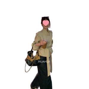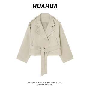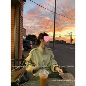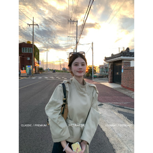 跨境【花花】慢调巴黎~韩系秋季短其色风衣外套女小个子薄衣默认