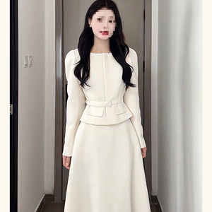设计感时尚白色收腰长袖上衣外套女秋季新款宽松显瘦半身裙两件套