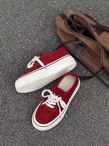 真皮厚底运动板鞋2025秋季新款透气软底的训鞋红色系带休闲单鞋