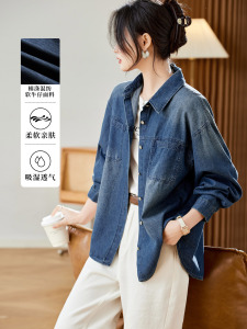 棉茧 水洗复古牛仔衬衫外套女长袖2025秋冬装新款中长款上衣衬衣