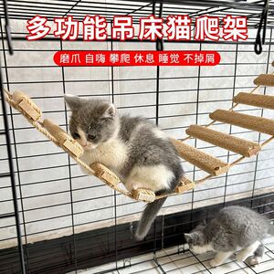 实木绳梯猫爬梯猫抓板麻绳跳台抓板多层攀爬直梯麻绳结实耐用