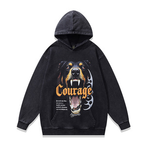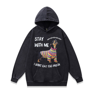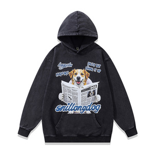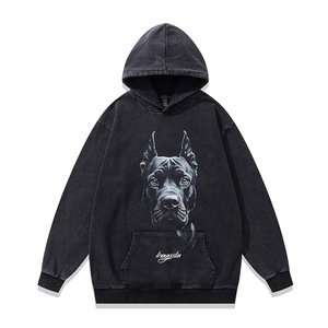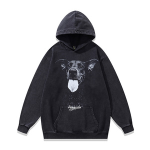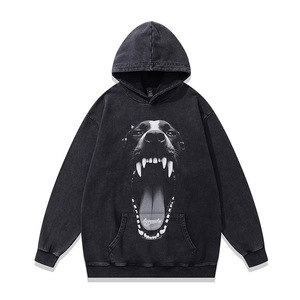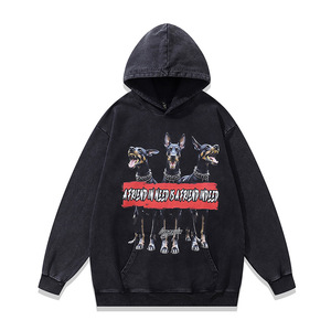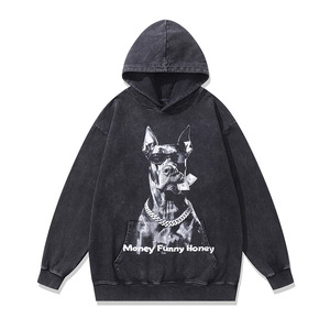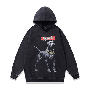 TKPK重磅水洗做旧连帽卫衣跨境宽松美式复古狗狗印花纯棉帽衫男女
