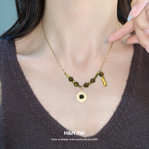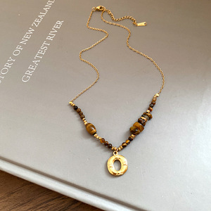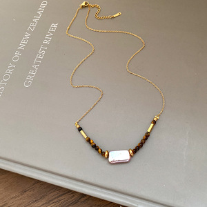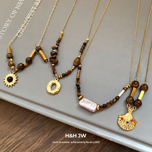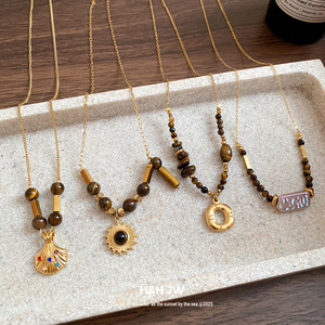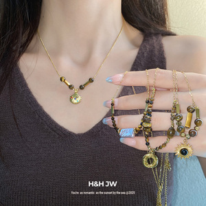 虎眼石珍珠贝壳圆形吊坠项链女秋冬复古轻奢锁骨链小众高级感项饰