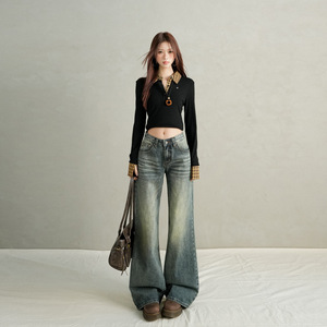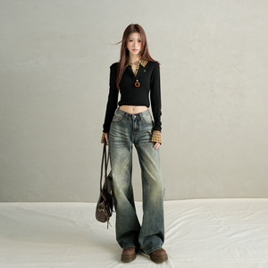 2025秋冬新款&又一显瘦力推款 低腰美式垂感宽松拖地牛仔裤女