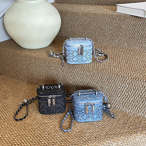跨境女包秋冬新款牛仔烫钻小香风柳钉盒子包高级感链条口红斜挎包