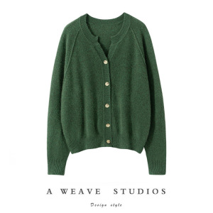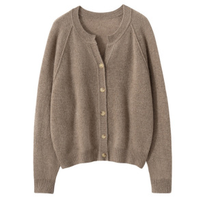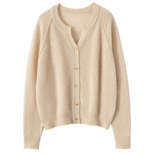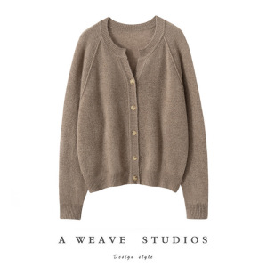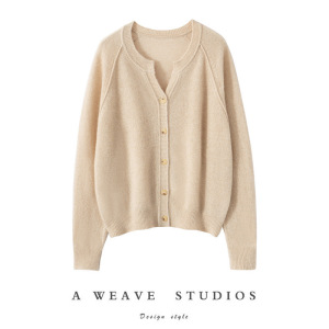 100纯山羊绒开衫女式V字领毛衣外套宽松显瘦版型针织长袖纯色外搭