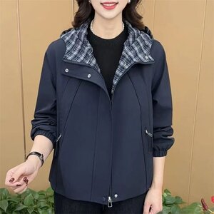 一件代发爆款格子撞色连帽外套2025秋季新品时尚休闲宽松百搭上衣