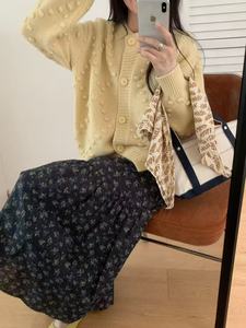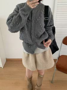 慵懒风纯色鼓包设计感高级感针织开衫女秋冬季宽松别致毛衣外套