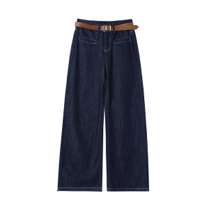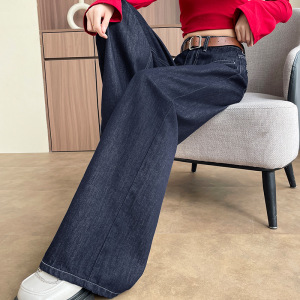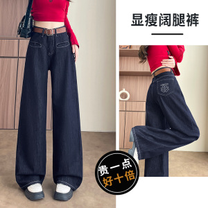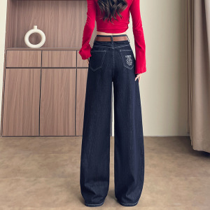 黑金蓝刺绣牛仔裤女秋季新款2025宽松高腰显瘦设计感阔腿裤拖地裤