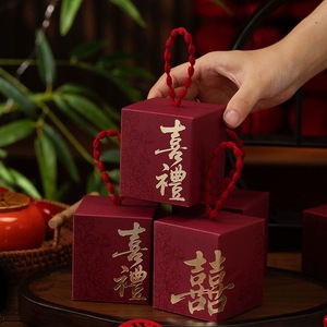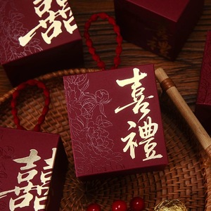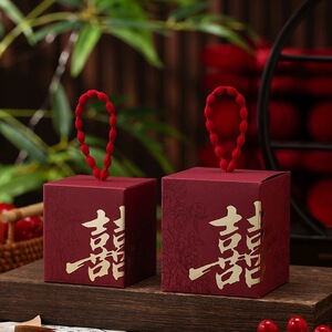 喜糖盒子新款中式结婚手提糖果盒回礼喜糖袋小众伴手礼空盒