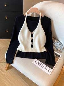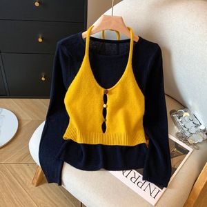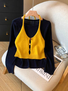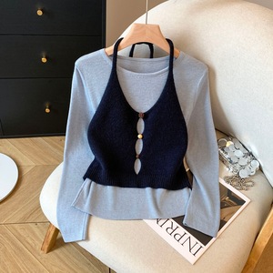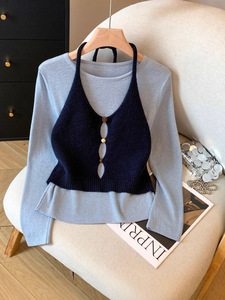 2025秋季新款女装韩系女士针织衫吊带背心慵懒风长袖上衣女A7447