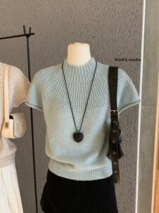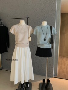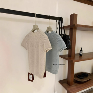 WGWE7400广州十三行女装2025秋装新款小个子半高领短袖针织衫上衣