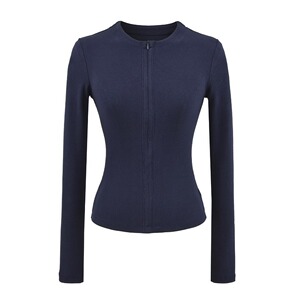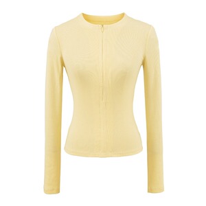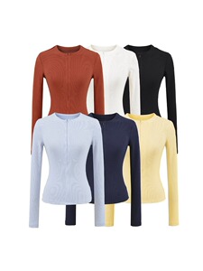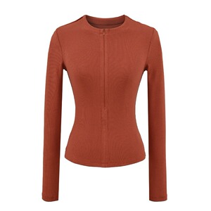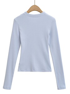 2025秋季新款纯色螺纹隐形拉链修身时尚运动长袖T恤上衣批发