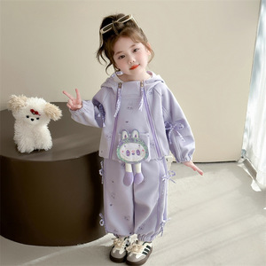 韩国女童卡通爱心蝴蝶结套装2025秋季新款两件套洋气网红童装代发