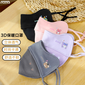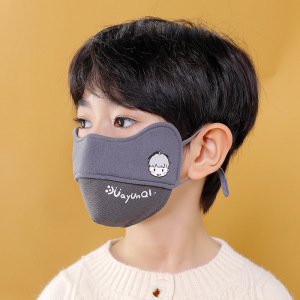 儿童口罩女孩秋冬新款小学生绒布可水洗加厚保暖男童女童开口漏鼻