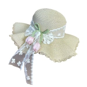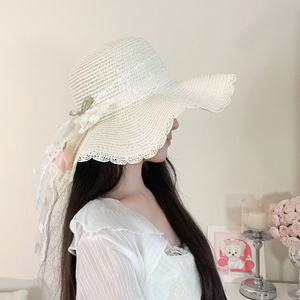 蕾丝草编太阳帽子女大帽檐夏季透气草帽海边遮全脸遮阳防晒帽子潮