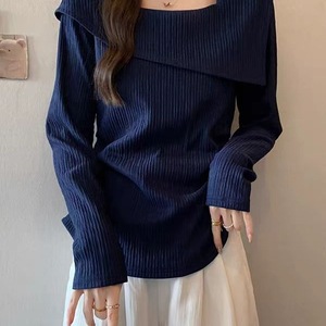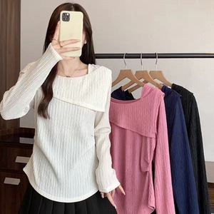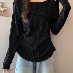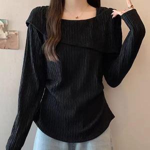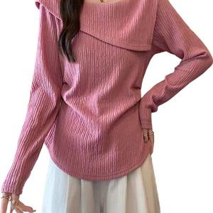 秋季新款甜美减龄不规则正肩收腰洋气显瘦T恤