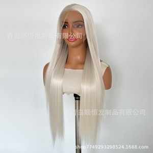 跨境假发 前蕾丝手勾银白色长直发万用COS高温丝头套工厂现货批发