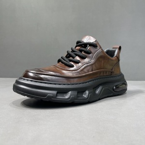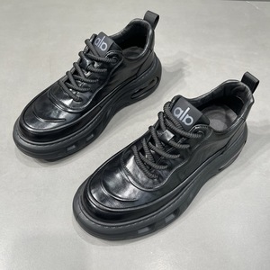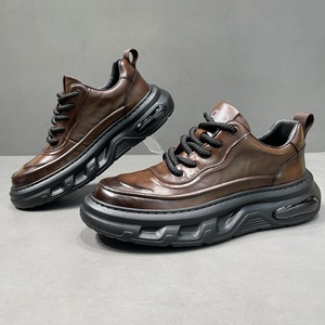 轻便气垫底男鞋新款秋季真皮休闲运动鞋男士厚底增高黑色老爹潮鞋