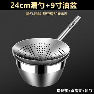 【316钢】24CM漏勺+油盆+盖子(送长筷+夹+油勺)