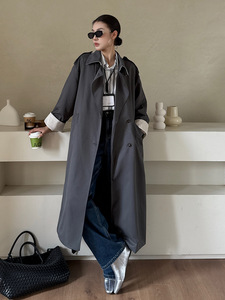 云长 风衣外套女加长款深色系秋季气质通勤韩版高智感薄款 K0128