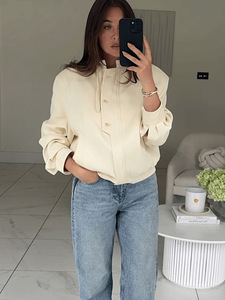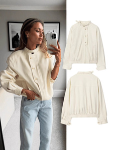 跨境外贸女装秋季欧美风纽扣装饰宽松夹克棒球服外套女