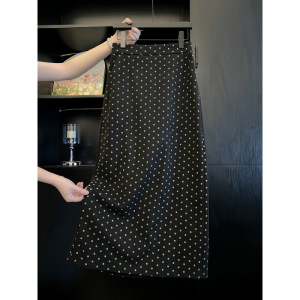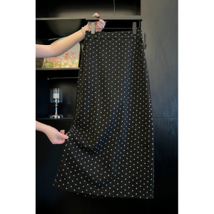 三标齐全 天猫品质 五线打边 复古波点半身裙女秋冬后开叉裙子