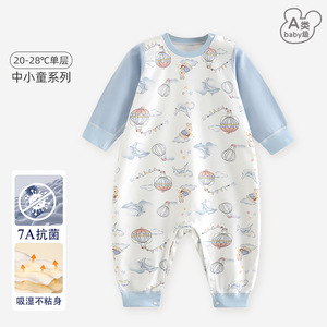新款儿童纯棉睡衣春秋四季无骨长袖连体衣婴儿爬服哈衣男女童睡袋