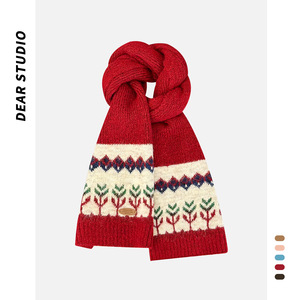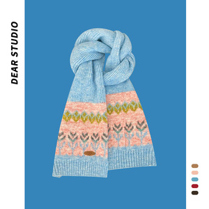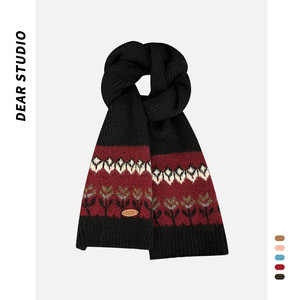 日系复古氛围感提花针织围巾女冬季2025新款保暖百搭情侣披肩围脖