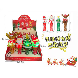 跨境电商圣诞系列闪光棒旋转七彩灯光圣诞树老人雪人麋鹿发光棒