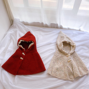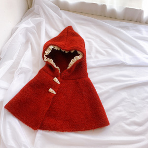 儿童披风秋装男女童加绒加厚斗篷披肩帽潮中大童宝宝披风现货连帽