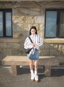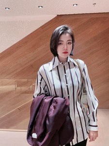 25秋季新款简约时尚显瘦慵懒氛围感百搭条纹丝棉长袖衬衫104