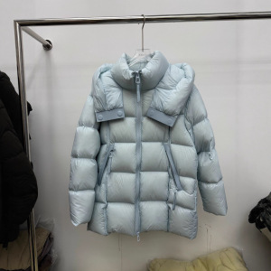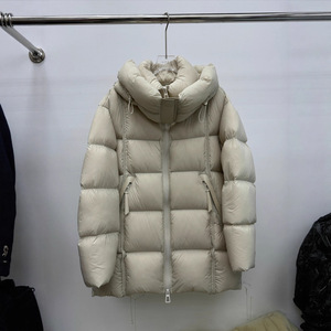跨境2025冬季新款连帽宽松云朵泡芙羽绒服女中长款加厚白鹅绒外套