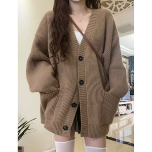 厚款毛衣外套女秋冬2025新款宽松外穿日系慵懒风复古软糯针织开衫