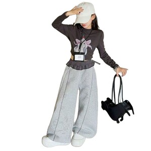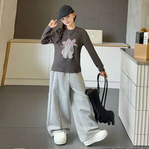 女童百搭时尚卫裤潮流两件套中大童春秋新款长袖花边休闲裤秋套装